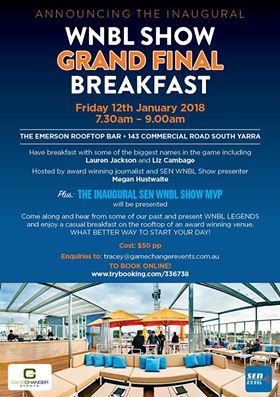 IT'S been a looong time between major events - such as a lunch or breakfast - leading in to a WNBL Grand Final but it will be happening in Melbourne on January 12 from 7.30-9am.