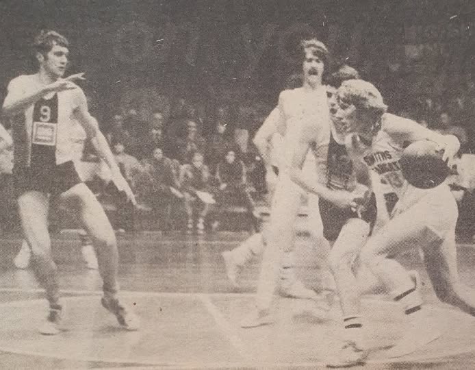 Hughesy hustled, played D and led from the front, also scoring 10 points in the epic 77-70 championship victory but to this day, clear as day, I can see him hitting the last shot of the match - which would've been a 3-pointer today - then running and jumping into my brother Geza's arms as the siren sounded, the crowd roaring its approval. SA was in white (maybe very light blue), Victoria in navy (near enough to black) and the colours were totally appropriate for the night's heroes and villains.