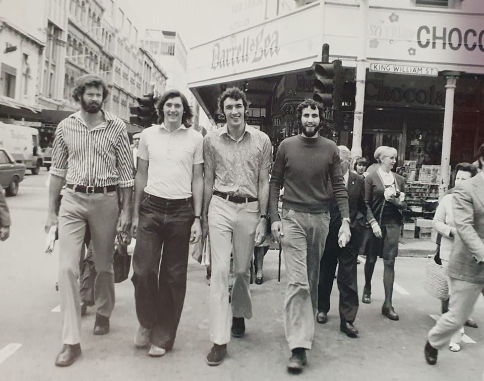 But Rick was always ready to help in any sort of promotion, as he did here in the picture below I arranged to advertise the 1975 Australian Club Championship. The tournament's four tallest players all agreed to walk across King William St in the city from Rundle Mall for this shot: