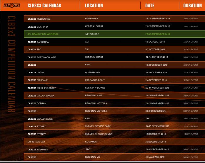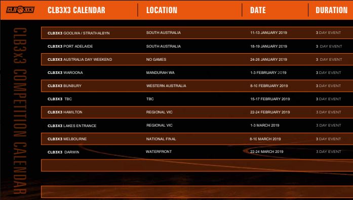 TweetCHAMPIONS League Basketball has revealed its exciting new calendar, featuring 25 major 3X3 events and a National Final coming to an iconic Melbourne location.