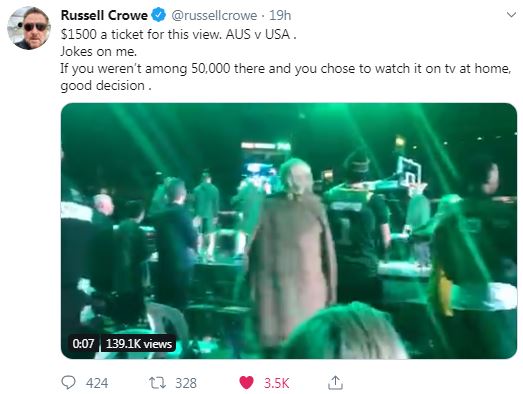 So that's the official statement. Here's one from Oscar-winning actor Russell Crowe who was at the game and tweeted: