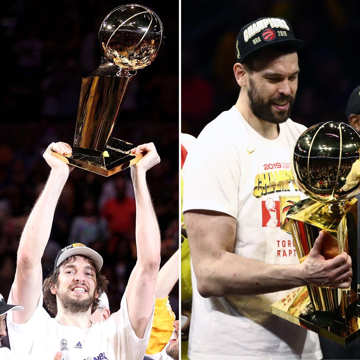 Pau Gasol won with the Los Angeles Lakers in 2009 and again in 2010, while Marc Gasol was right there, starting for the Raptors.