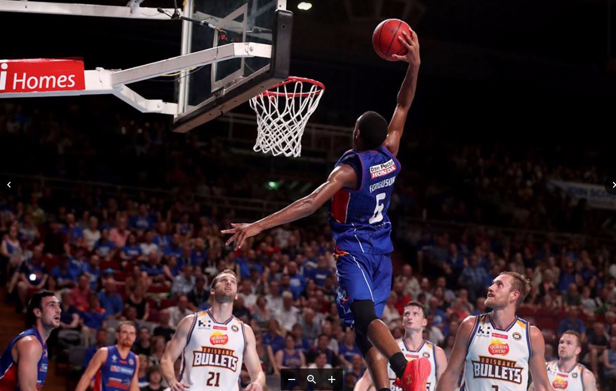 That's Terrance Ferguson taking the feed from Sam Johns and soaring over the grounded Bullets for a spectacular slam.