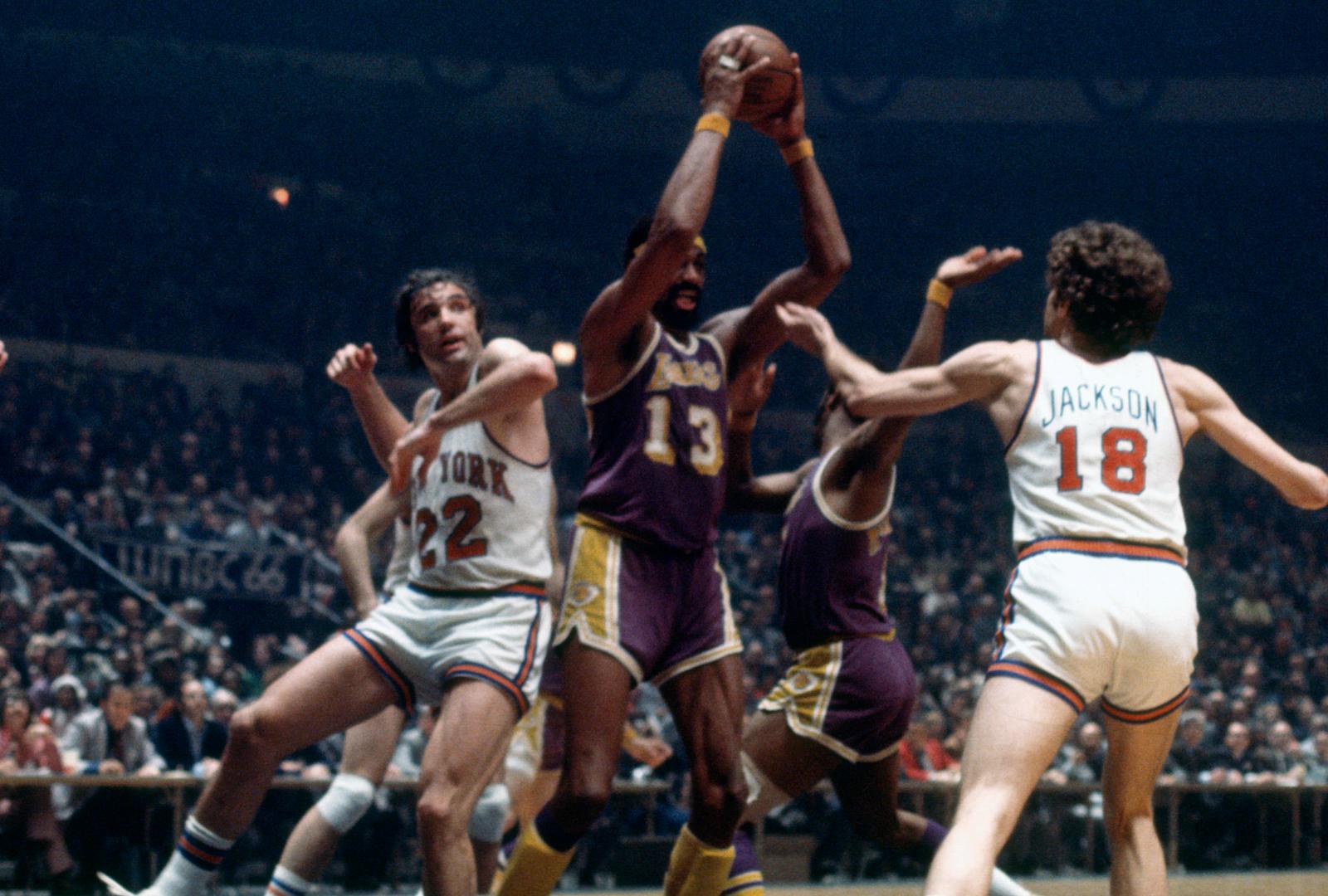 1972—In an amazing and gutty performance, Wilt Chamberlain leads the Lakers to a Game 7 win against the NY Knicks, giving the Lakers the NBA title. The 35-year-old Chamberlain scores 24 points, grabs 29 rebounds, and blocks 10 shots—all with a broken right hand wrapped in an oversized mitten—and becomes the oldest Finals MVP in league history.