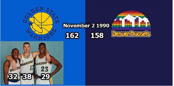 Speaking of NBA anniversaries, 31 years ago today in Denver, Colorado, the Golden State Warriors defeated the Denver Nuggets 162-158 in a game that must have been played using (to quote Rick Barry) the “Matador Defense” (Olé!).