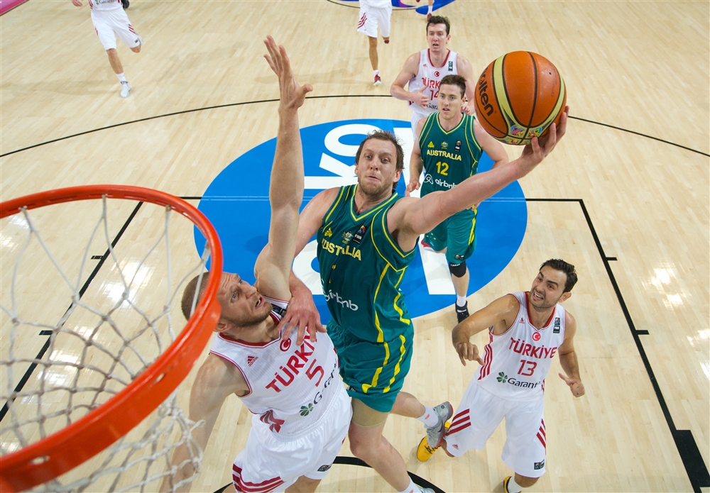 Australia’s 22-8 third period was huge, Joe Ingles (pictured below) continuing his impressive form with a game-high 21 points at 75 per cent, with six rebounds, three assists and a steal.