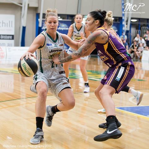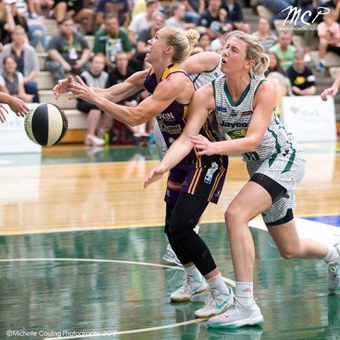 LOOSE BALL: Brittany Smart and Sara Blicavs battle it out in the recent overtime game.