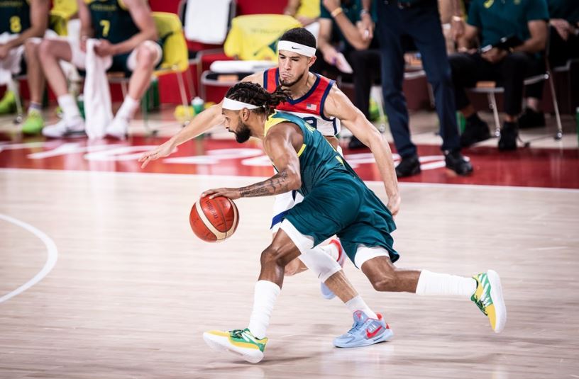 The game turned from there. The Americans stiffened their defence, Thybulle picked up an unsportsmanlike foul, the Aussies turned over the ball, their offence now spluttering and needing a Mills rainbow 3-pointer just to steady the ship.