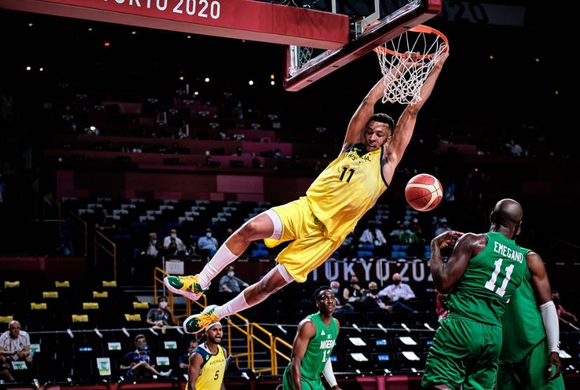 Thybulle already had thrown down a wicked dunk as Australia pulled its offence together after trailing 28-32, producing an 11-2 response.