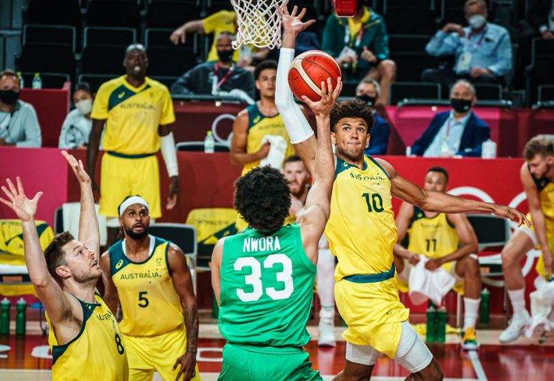 Australia's stellar defence meant Nigeria scored its first basket of the second half at 4:41 in the third quarter before it finished strongly to trail 52-58 going into the last.