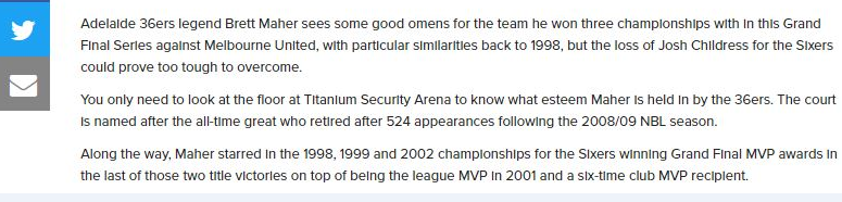 QUALITY work at the league's official website this week, quoting Adelaide 36ers icon Brett Maher on the championship series.