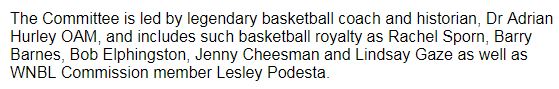 Good work too by BA in recognising its own "basketball royalty" on its induction committee, misspelling Rachael Sporn AND Bob Elphinston in its press release today: