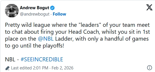 Is it possible Andrew Bogut is simply psychic but had his weeks confused when he speculated on X (formerly Twitter) about a 36ers crisis meeting? Because, lord knows, the club sure is in need of some external stimulus after dropping out of first place with its 99-100 loss to the hustling Hawks.
