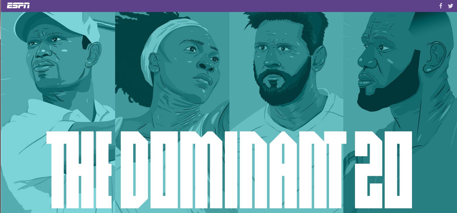 "We used our unpatented five-step process to determine the most dominant athletes of the past 20 years," ESPN The Magazine explained.