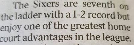 Or did they mean it was the Breakers which were 1-2, not the Sixers? Probably. But come on now. Sixers, Breakers - what's the difference?