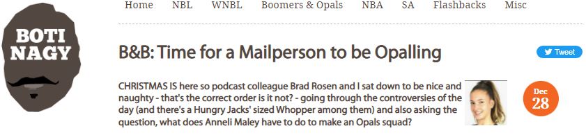 Pretty sure she polled highly in that game so even though the WNBL claimed Talbot played 17 games and Maley 16, she clearly did not. Just the standard WNBL misinformation.