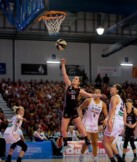 In front of a roaring sell-out 2,200 crowd at Townsville Stadium, the Fire seized the initiative early and never relented despite the best efforts of Brittany Smart, Liz Cambage and Kalani Purcell.