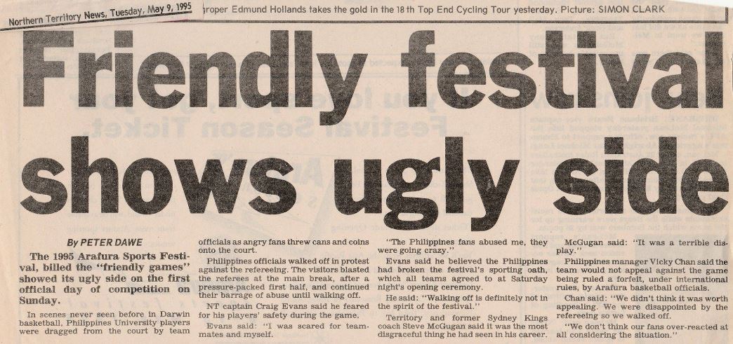 The 1995 Arafura Sports Festival, billed the "friendly games" showed its ugly side on the first official day of competition on Sunday.