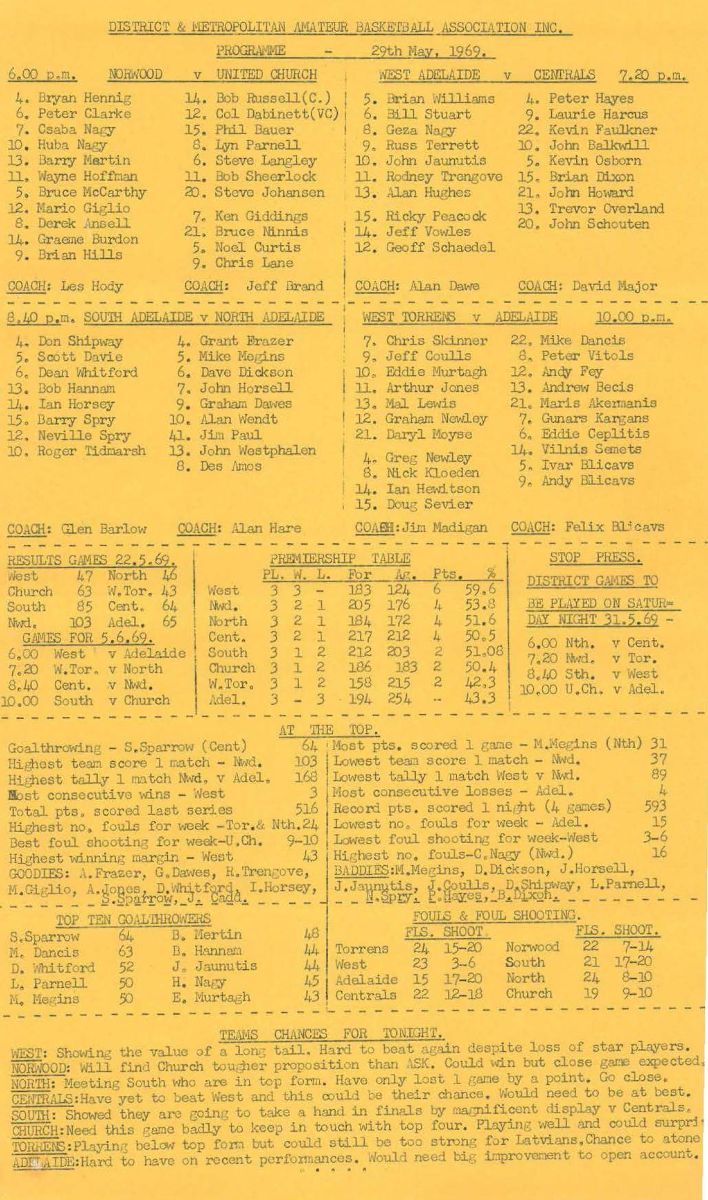 IN South Australia during the 1960s and into the 1970s, State League (or District games as they then were called) were accompanied each night by a free program at the door, the "yellow sheet". For several of the past few weeks, I have run them here and received a great response so here is one more before I return to Flashbacks of wider interest. This is from May 29, 1969.