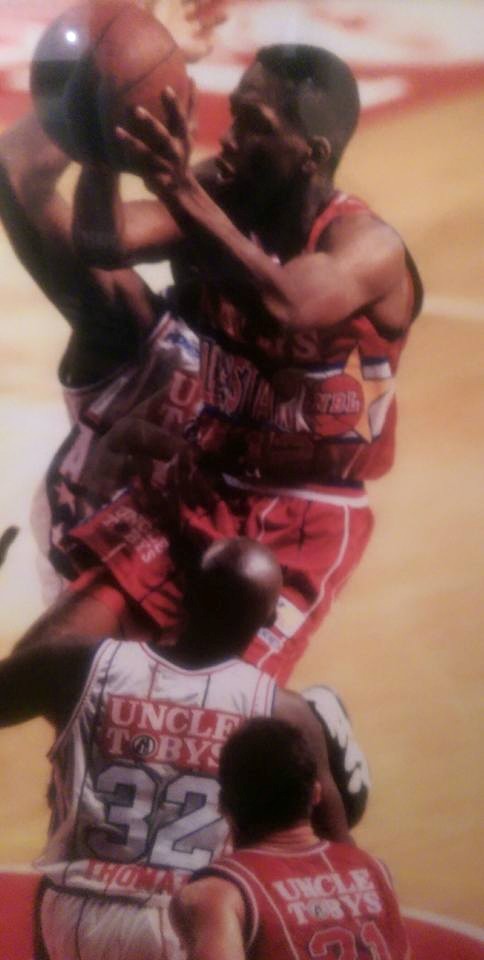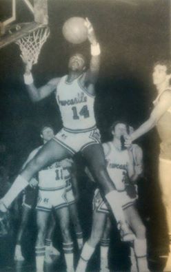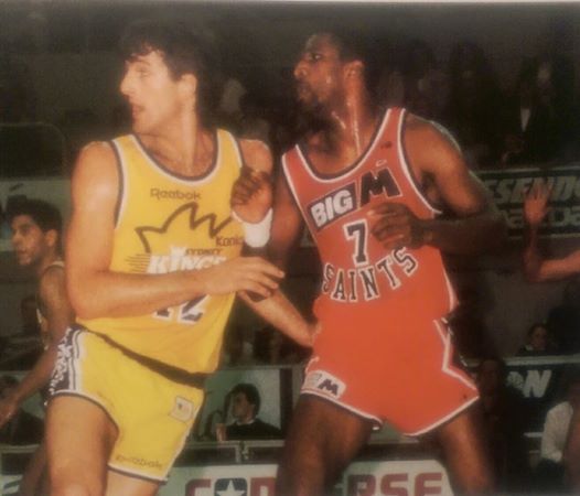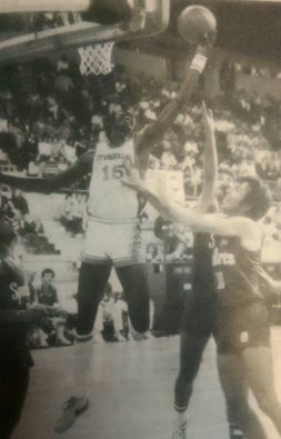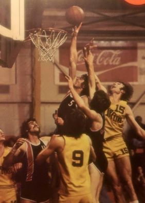 MY FAVOURITE PLAYER: Ken Richardson again, this time outrebounding Bill Palmer.