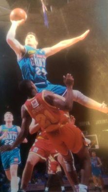 BACK TO THE FUTURE: Illawarra Hawks' first MVP Mike Jones in flight.