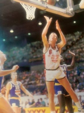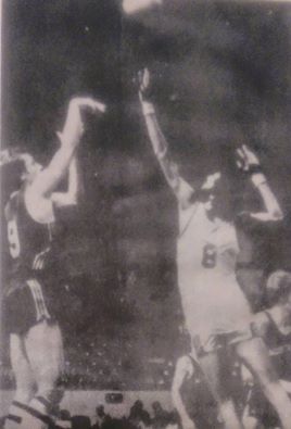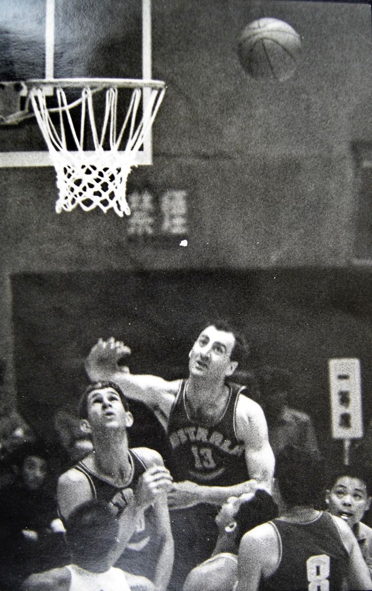 MOUNT VLAD: Ray Borner looks for an opening against the Soviet's 220cm behemoth Vladimir Tkachenko.