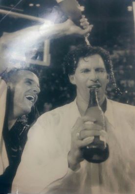 YOU DON'T DRINK IT! Darren Lucas douses coach Brian Goorjian.