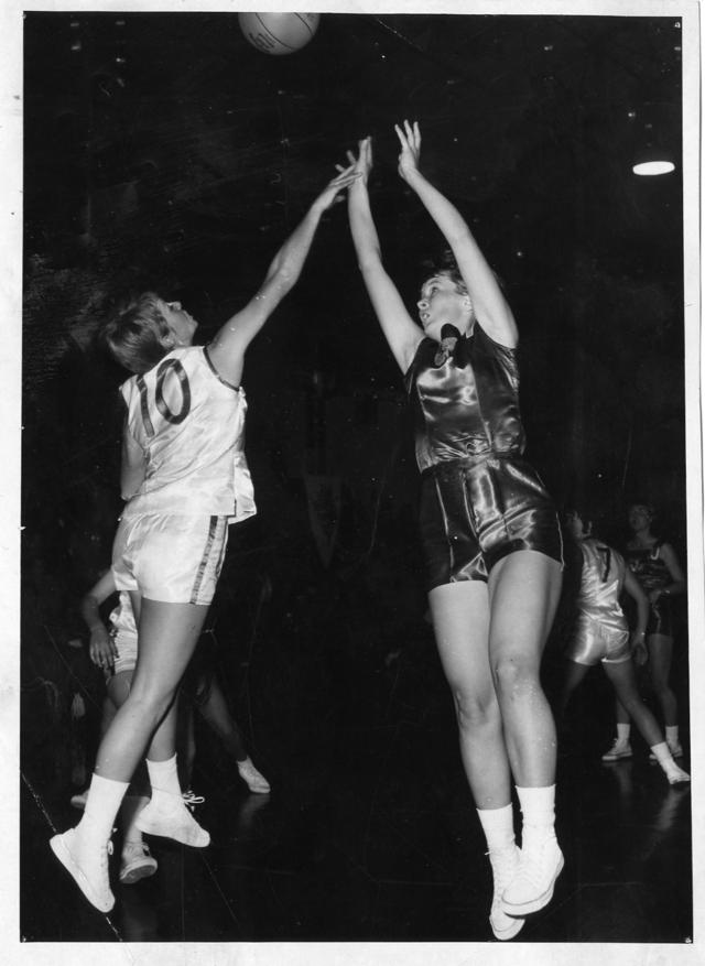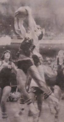 LONG AGO: SA's Joan Brown in action against Victoria in Newcastle in an Australian Championship Final.