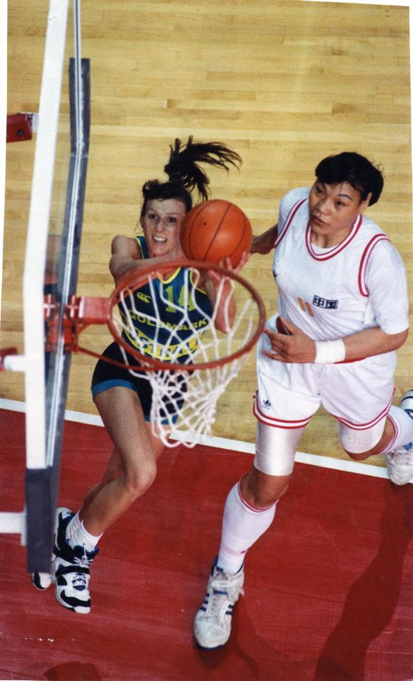 PRE-OPALS GEM: Jill Hammond grabs a board for Australia, watched by Maree Bennie and Julie Gross.