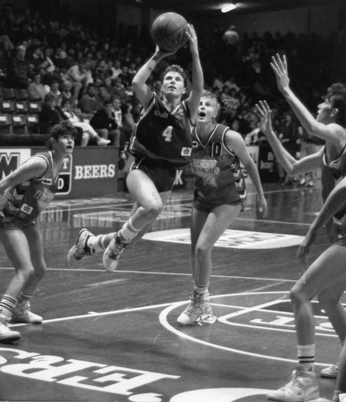 ROLL THE DICE: Cliff Martin (Casino City) looks past Nunawading's Brendan Joyce in the 1981 NBL Final.