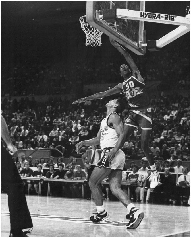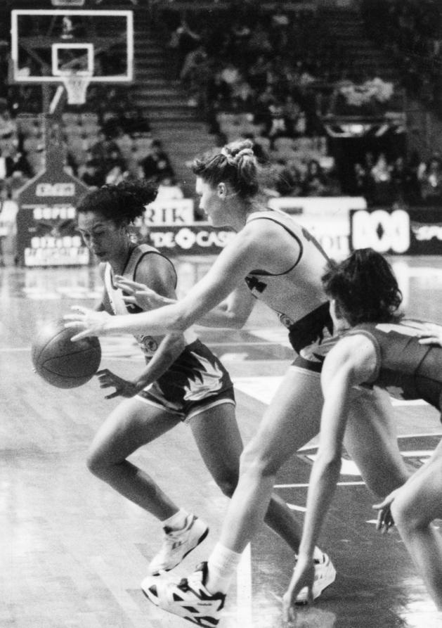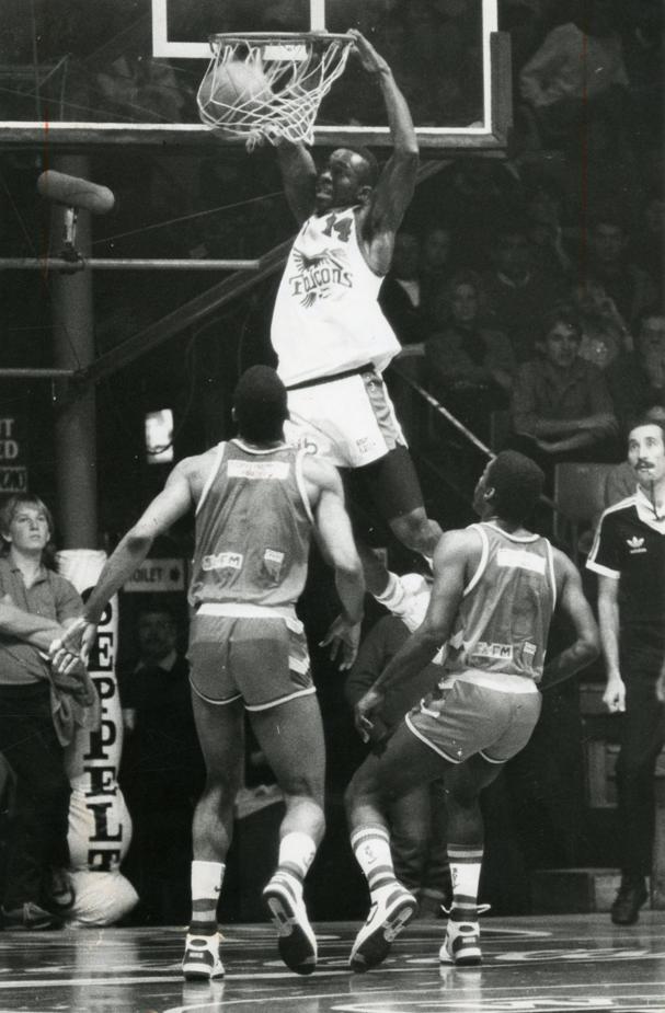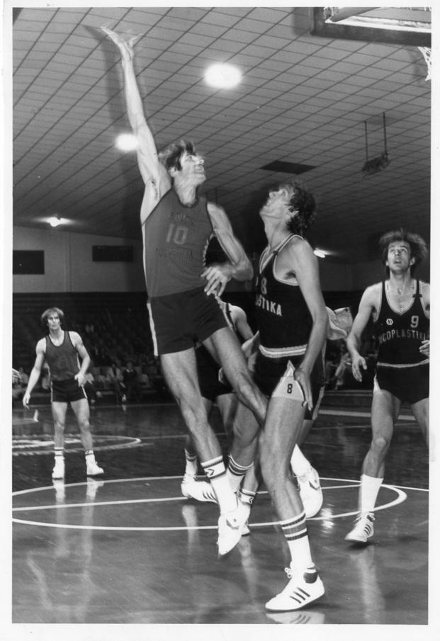 RICH MAN, POOR PLASTIKA: Ken Richardson scores for SA against Jugoplastika, watched by a hairy Phil Smyth.