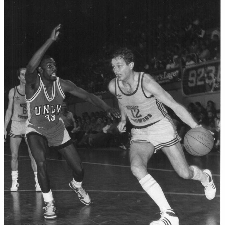 SMOKING CUBANS: As the caption says, Eddie Palubinskas about to score for the Boomers.