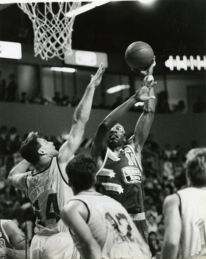 THE ENSIGN: No it's not The Admiral, but it is David Robinson scoring for the 36ers.