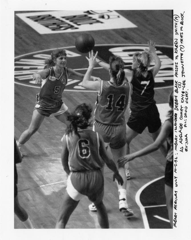SPINNING TOP: Hobart's Debbie Black gets off a pass against Adelaide Comets.