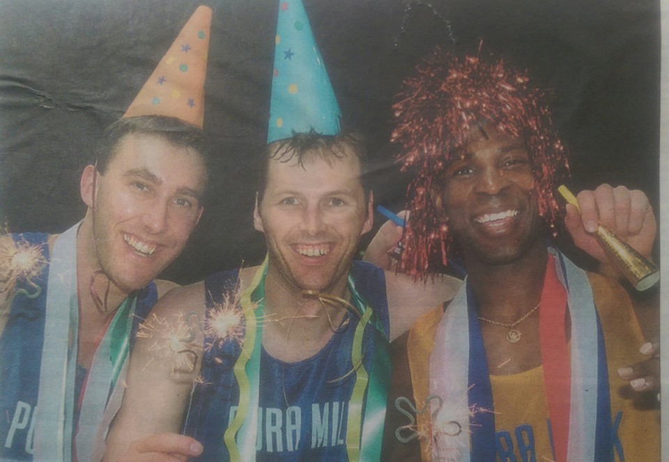 HAPPY NEW YEAR: 36ers Mark Nash, Paul Rees and Mark Davis, pre-2000's NYE celebrations.