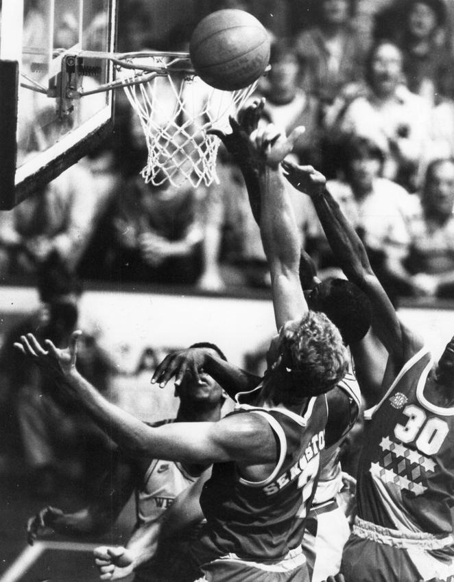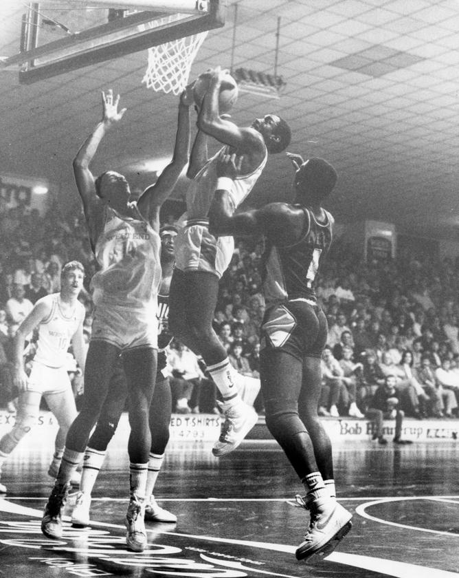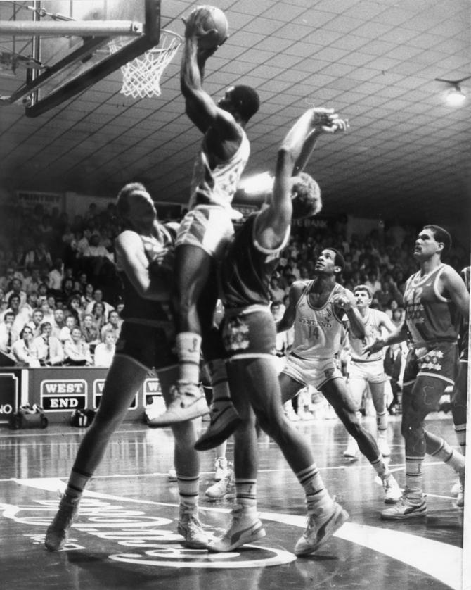 VINTAGE MARK: Mark Davis scores against the Bullets.