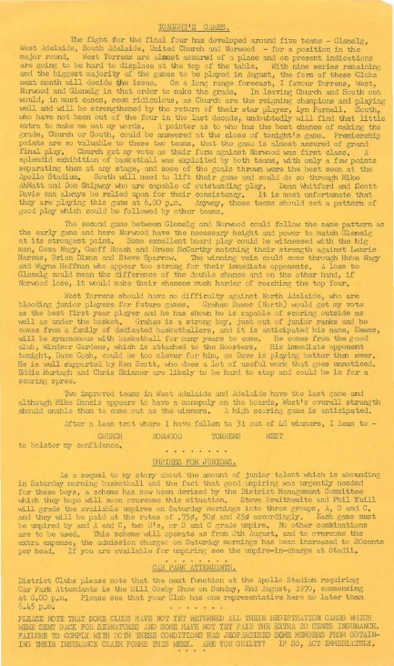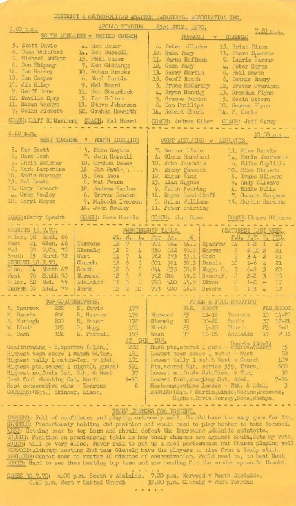 IN South Australia during the 1960s and into the 1970s, the Premier League (or District games as they then were called) were accompanied each night by a free program at the door, the "yellow sheet". I've revisited a few now in this section so here's another trip down that memory lane.