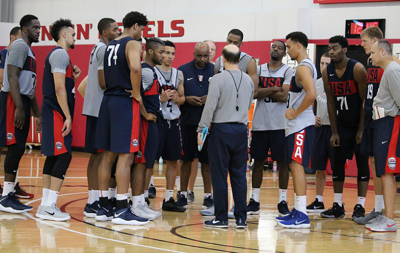 The official USA roster is: Bryce Alford (Oklahoma City Blue), Dwayne Bacon (Charlotte Hornets), Henry Ellenson (Detroit Pistons), Reggie Hearn (Grand Rapids Drive), Isaiah Hicks (New York Knicks), Dakari Johnson (Free Agent), Frank Mason III (Sacramento Kings), Ben Moore (Fort Wayne Mad Ants), Chasson Randle (Capital City Go-Go), Travis Trice (Milwaukee Bucks), Jameel Warney (Texas Legends), Derrick White (San Antonio Spurs).