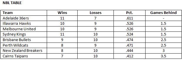 TweetHOW tight is the NBL competition? Well, even with people starting to murmur Cairns may have fallen out of the playoff race, truth is the Taipans are 3.5 games out of first place.