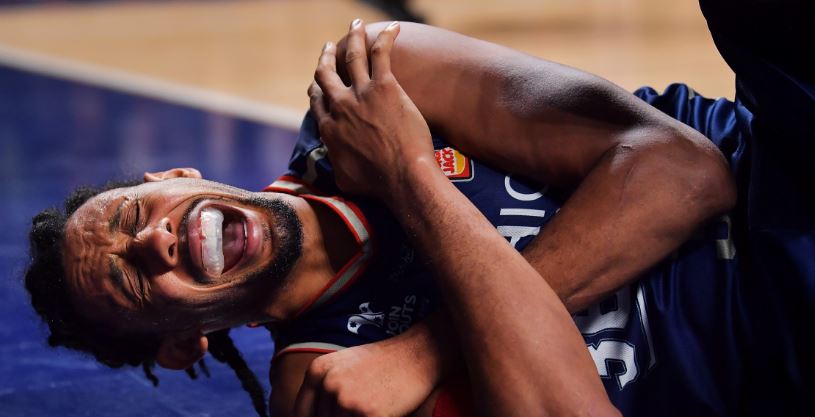 The 36ers' star NBA import was still picking himself up at the other end of the court, his left arm hanging limply at his side as he was escorted to the changerooms.