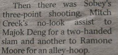 But it was only in one of Sunday's newspaper match reports (right) most of us became aware that this shot was, in fact, an "alley-HOOP" and NOT an alley-oop as we have been led to believe all these years.
