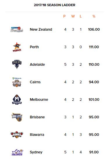 This was what it showed today at the end of Round 3, even though Perth now has lost a game and Cairns, if I'm not mistaken, is 3-2.