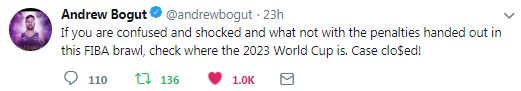 His penalty, the three-match ban on Thon Maker and the soft response by FIBA to the pack-mentality madness that beset the Philippines team and its officials roundly and rightly was criticised today by the sporting community.