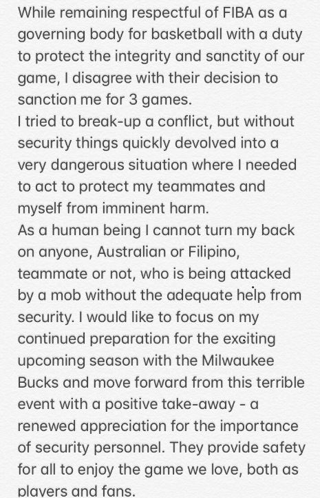“The Board of Basketball Australia met today to consider the sanctions imposed by the FIBA Disciplinary Panel against the Australian Boomers and the national federation,” BA said in a statement.