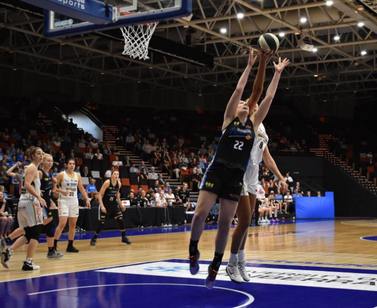 SCHERF'S UP: Lauren Scherf contests this board with Liz Cambage. Pic courtesy of Caps FB