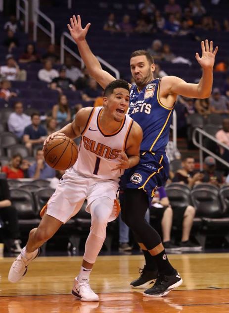 NBAvNBL #3: PHOENIX SUNS 114 (Booker 31, Len 20, Bender 16, Ulis 11; Chandler, Bender 9 rebs; Booker 6 assts) d BRISBANE BULLETS 93 (Trice 20, Jervis 13, Jerrett 12, Buford 11, Kickert 10; Kickert 10 rebs; Trice 5 assts) at Talking Stick Resort Arena.