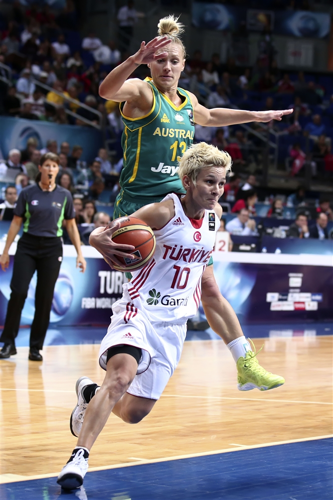 TOUGH NIGHT: Erin Phillips worked hard late to curtail Turkey's Isil Alben.