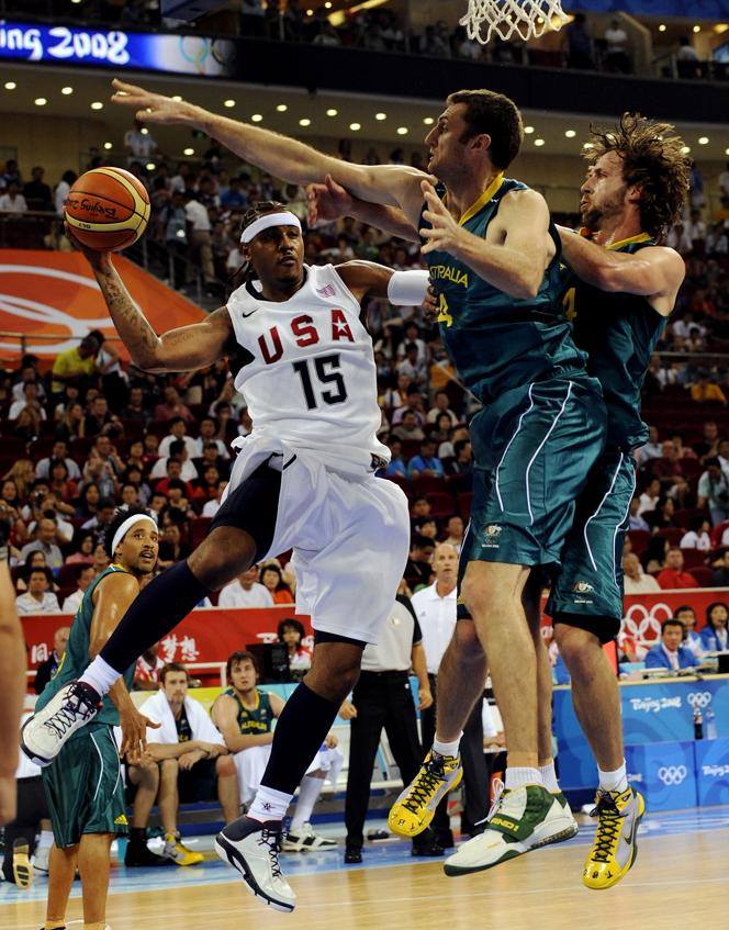 Carmelo Anthony, with 9-of-15 threes in his 31-point game-high, was the thorn, Kyrie Irving also finishing strongly to effect the great escape. “We expected that,” the Melbourne-born US point guard said of Australia’s tenacious effort, the Boomers tied 29-29 at quarter-time, and ahead 54-49 at halftime before being contained to 34 second-half points.