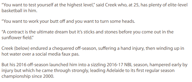 Opportunities still exist again for the trio of Mitch Creek, Nathan Sobey and Corey Webster who, for now at least, are contracted to mplay NBL next season. Here's how their futures looked a year ago, On This Day...