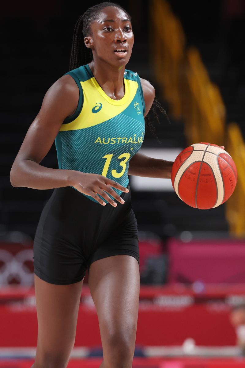 Trailing 17-21 at the first break, the Opals rallied behind Magbegor's consistency and a sudden offensive outburst from Cayla George. Consecutive 3-pointers followed by a fake for a three and drive to the hoop had Australia galloping away at 30-25.